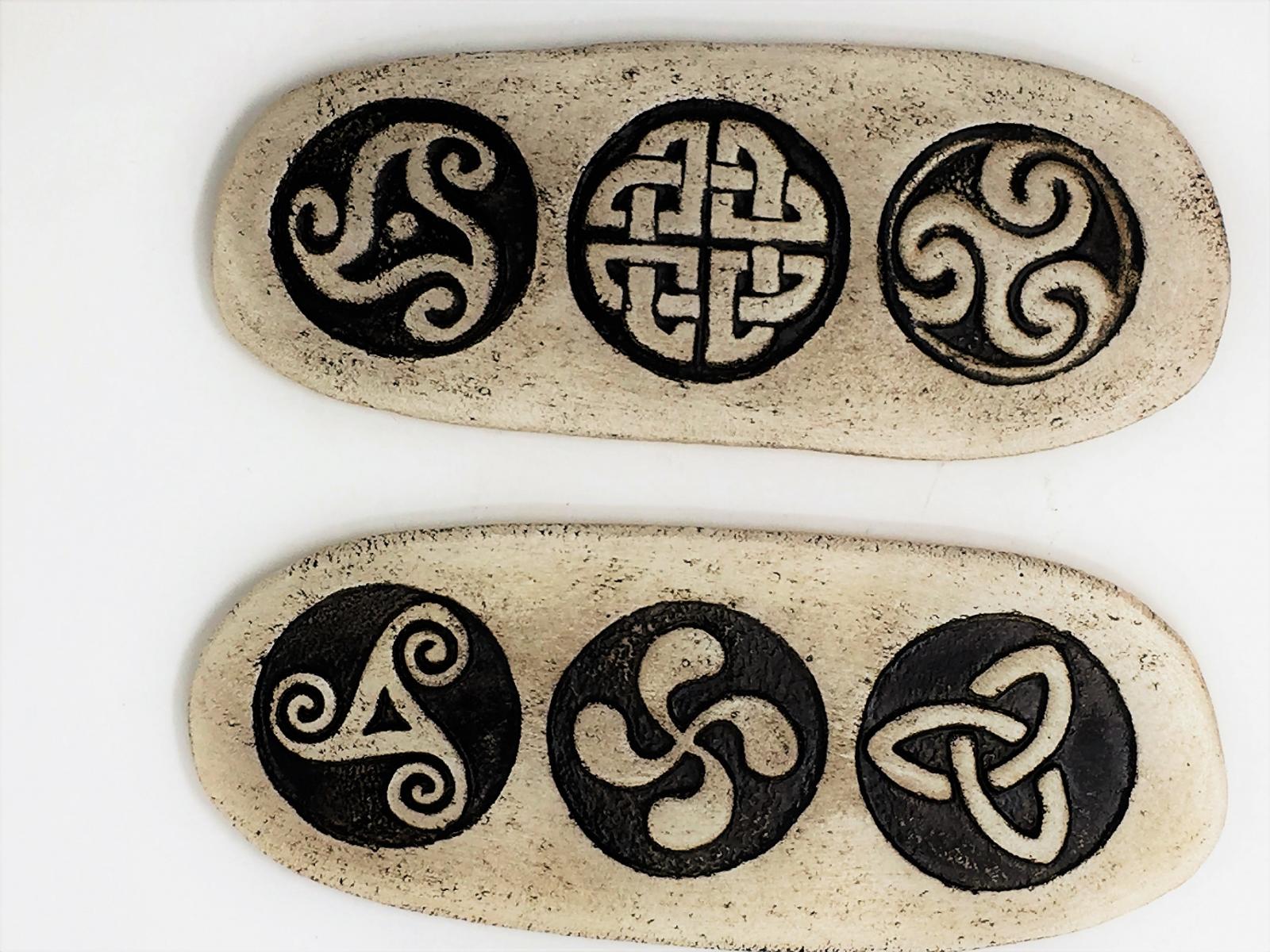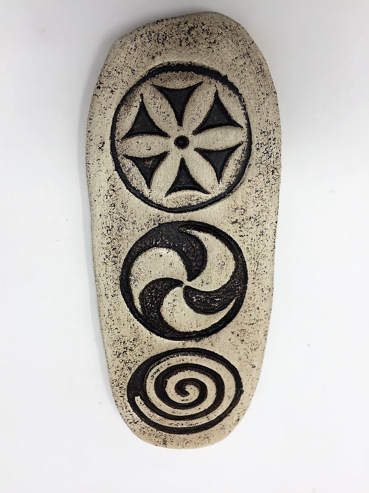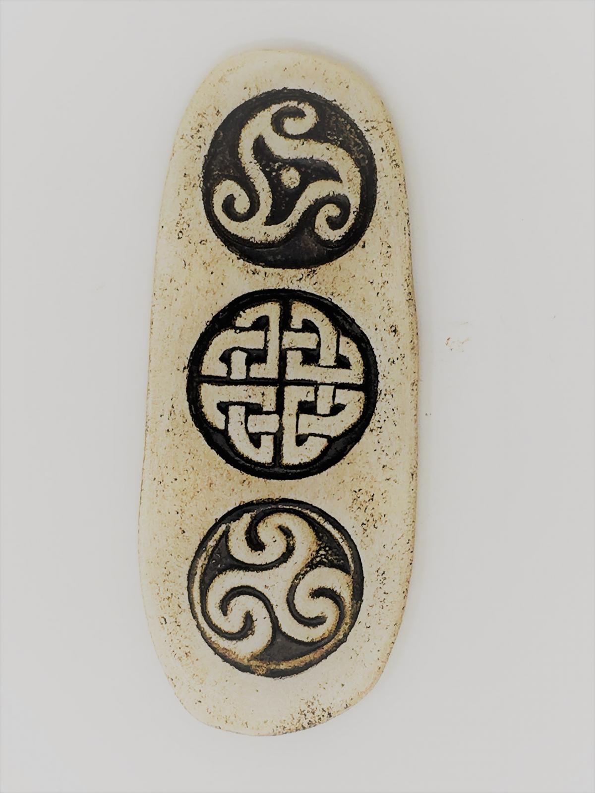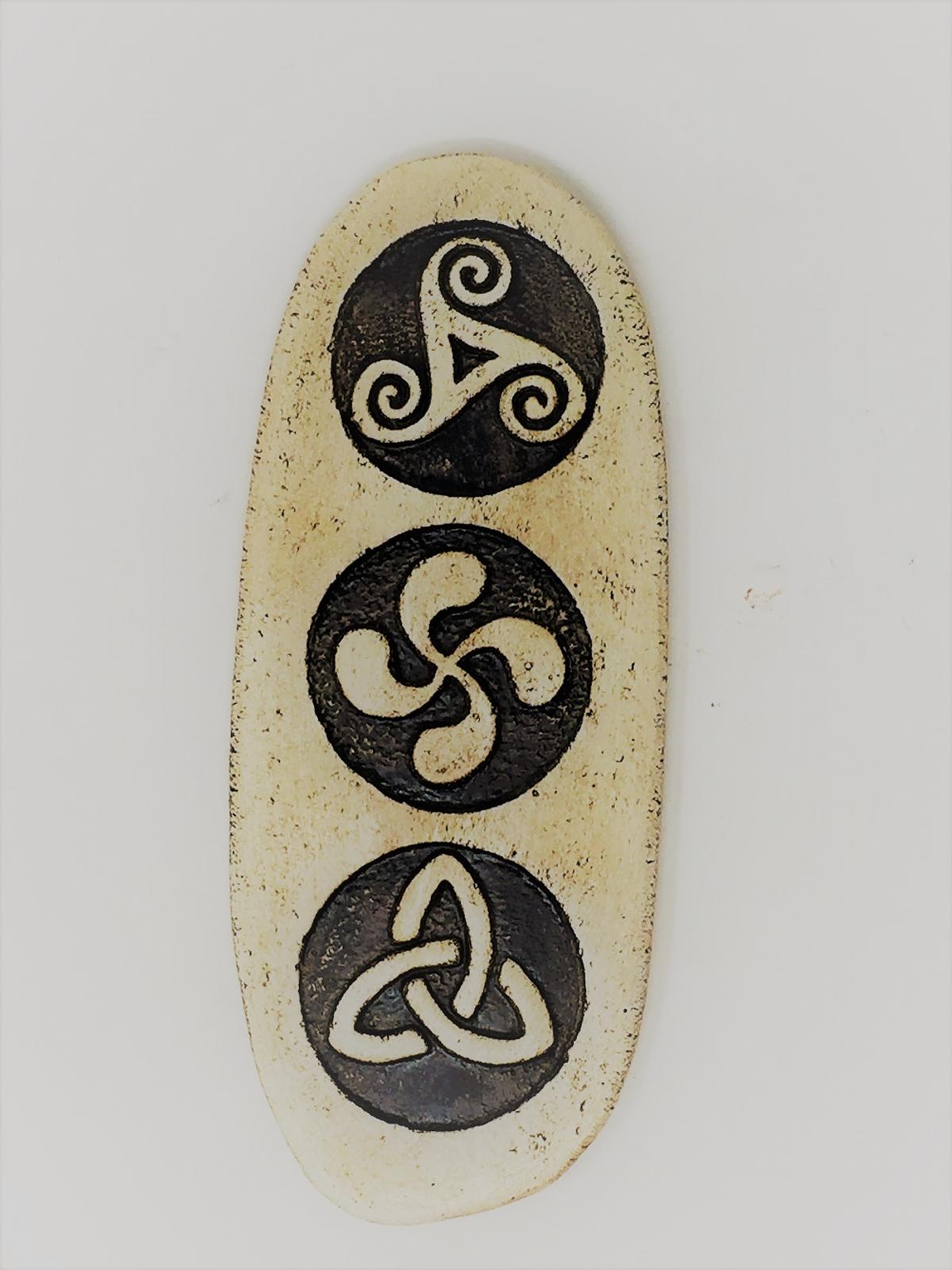 Pieza con tres símbolos de la mitología celta. Medidas: largo (24 cm.) y ancho (10 cm.)